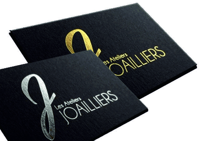 Используйте контраст. Особенно хорошо смотрятся тёмные визитки с металлической краской.