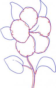 Следующим этапом сделайте лепестки неровными линиями. Стебель сделайте более толстым.