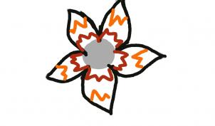 Лепестки нарисуйте как на картинке с заостренными концами. Распределите их так чтобы их получилось пять.