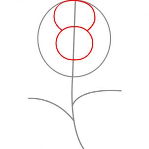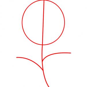 Наметьте круг, это будет основа цветка. Примерно по центру проведите линию стебля.