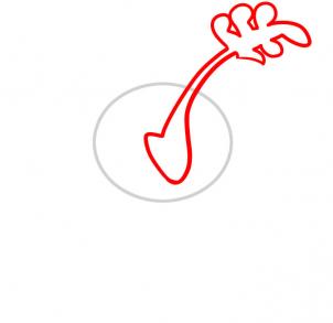 Теперь нарисуйте тычинку торчащую из цветка. Основание более толстое, а на конце изобразите кружочки на ножке.