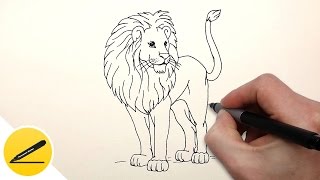 Теперь нарисуем заднюю часть туловища и хвостик с кисточкой на конце. Наш лев готов и можно переходить к его львице подружке.