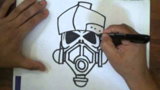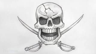Видео: как нарисовать 3D череп пиратов с ножом в зубах